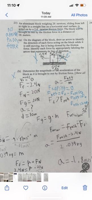 The block will be brought to rest by the friction force in a distance of 10. The SI unit for force is the newton N. A On the diagram of the block draw an arrow to identify the direction of each force acting on the.
